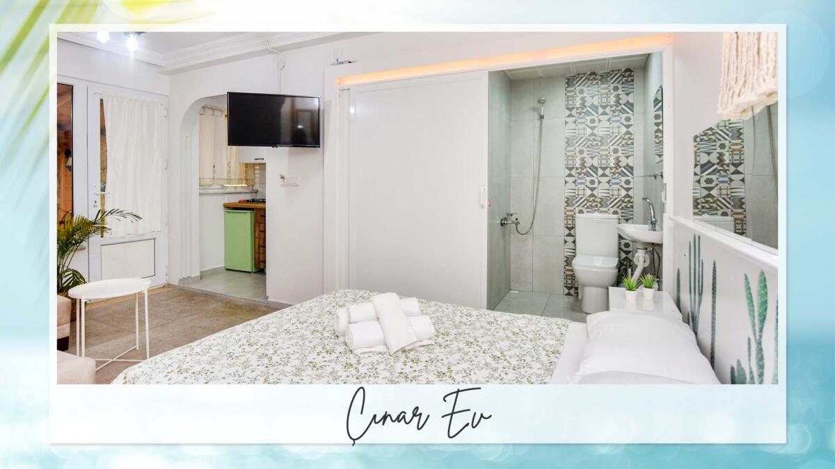 4 kişilik çekyatlı odamızda bir çift kişilik yatak ve yine aynı odada bir adet çift kişilik L koltuk bulunmaktadır. Ayrıca banyo-wc ve mutfağı da odanın içindedir. Bu odalarımız yüksek giriş katında bulunmaktadır ve yaşlı, küçük çocuklu ve engelli aileler için en uygun oda türümüzdür. Oda yan cepheye bakmaktadır ve balkonundan deniz görmektedir. Balkonlarında yemek yiyebileceğiniz masa ve sandalyeler mevcuttur.